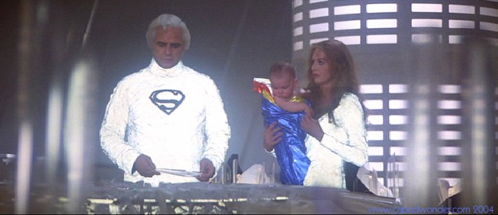 I never particularly cared for that interpretation of the symbol (which was apparently jus done because Brando wanted to wear the Superman symbol). But it’s undeniable that Brando’s presence added a certain amount of gravitas to this film. However, I feel his performance is too subdued here. Whether it’s in the opening scene where he’s sentencing the three criminals to the Phantom Zone, or trying to convince the rest of the Science Council that their planet is about to explode, he’s too detached, there’s no emotion in his face. No wonder they didn’t believe him. If their planet was really doomed wouldn’t he be shouting “Dude! We gotta get the f***k outta here!!!!!” And then he convinces his wife, Lara (Susannah York), to let him send their infant son, Kal-El, out into space to survive. Again, there’s not much emotion there.