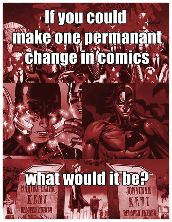 So there’s lots that need to change, but if I could just implement one major change, it’s making most individual comics accessible by writing them as single-issue stories. I wouldn’t ban longer arcs. I’d just make sure it was done when really necessary. If a writer has a story that just can’t be cut down to one issue, without sacrificing quality, then okay, let them a 2-part story, or 3 parts, or even 4. But that shouldn’t be done more than once a year in a single title. And anything longer than 4 issues I would have published separately as a miniseries, so it doesn’t interrupt the regular series. I think that’s a good start to changing the industry for the better.