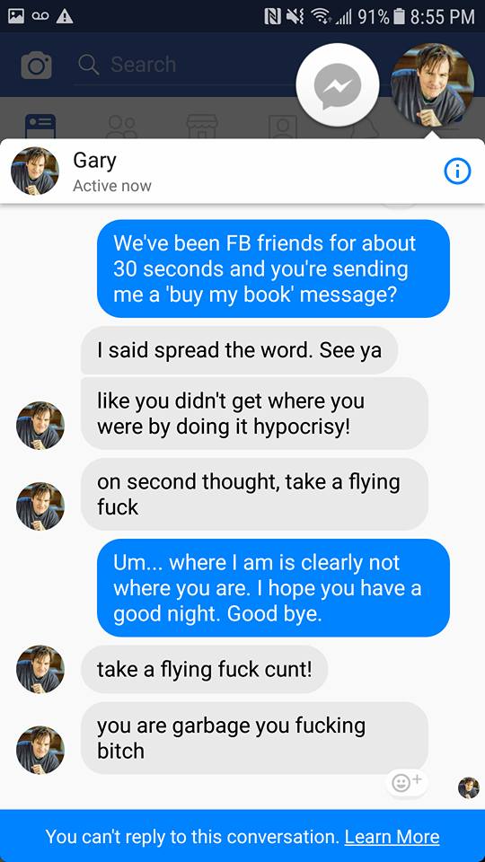 […] inbox on Facebook. It’s a prime example of the type of thing I was just writing about it in THIS POST. I don’t know this fellow, we are not connected on Facebook or any other social media. And […]