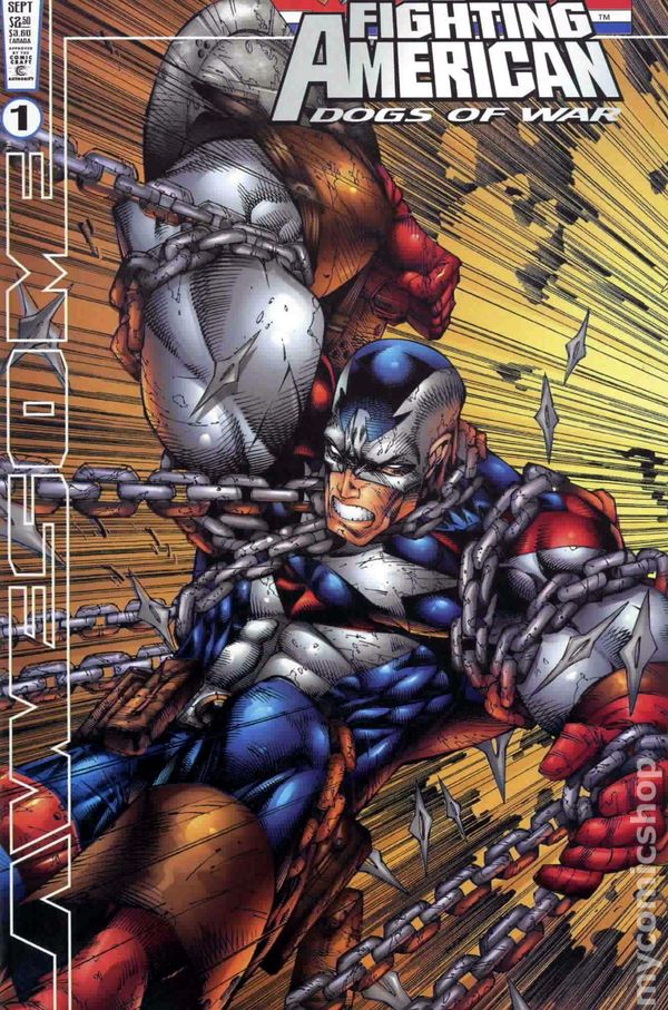 So, seven months had passed since the release of the third and final issue of Fighting American: Rules of The Game. During that time, the promised “Cold War” book that Rob Liefeld was advertised as doing, which was to somehow feature both Rob’s version of Fighting America and the original Simon and Kirby version of Fighting American (with Speedboy) never materialized. Although the character did make a couple of appearances in another of Rob’s Awesome Comics’ titles.