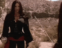 Another stand-out episode to me was one in which Elizabeth Gracen played a woman who came to town impersonating the Queen of Swords and is used by Col. Montoya to rob peasants, thereby ruining the Queen’s reputation among the population who have come to worship her as a hero. Tessa has to face this impersonator in a sword fight, to prove her innocence.